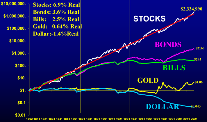 Akcie sú dlhodobo najvýnosnejšou triedou aktív, ale krátkodobo môžu výrazne kolísať. Preto sú vhodné najmä pre dlhodobých investorov, ktorí sa nepozerajú na vývoj každý týždeň. Výnosnosť rôznych tried aktív z amerického prostredia perfektne zmapoval vo svojej knihe Stocks for the Long Run americký ekonóm Jeremy Siegel.