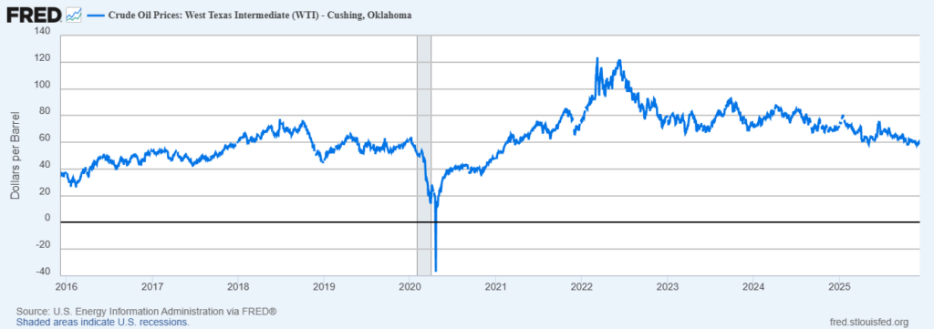 Cena WTI ropy za posledných 10 rokov